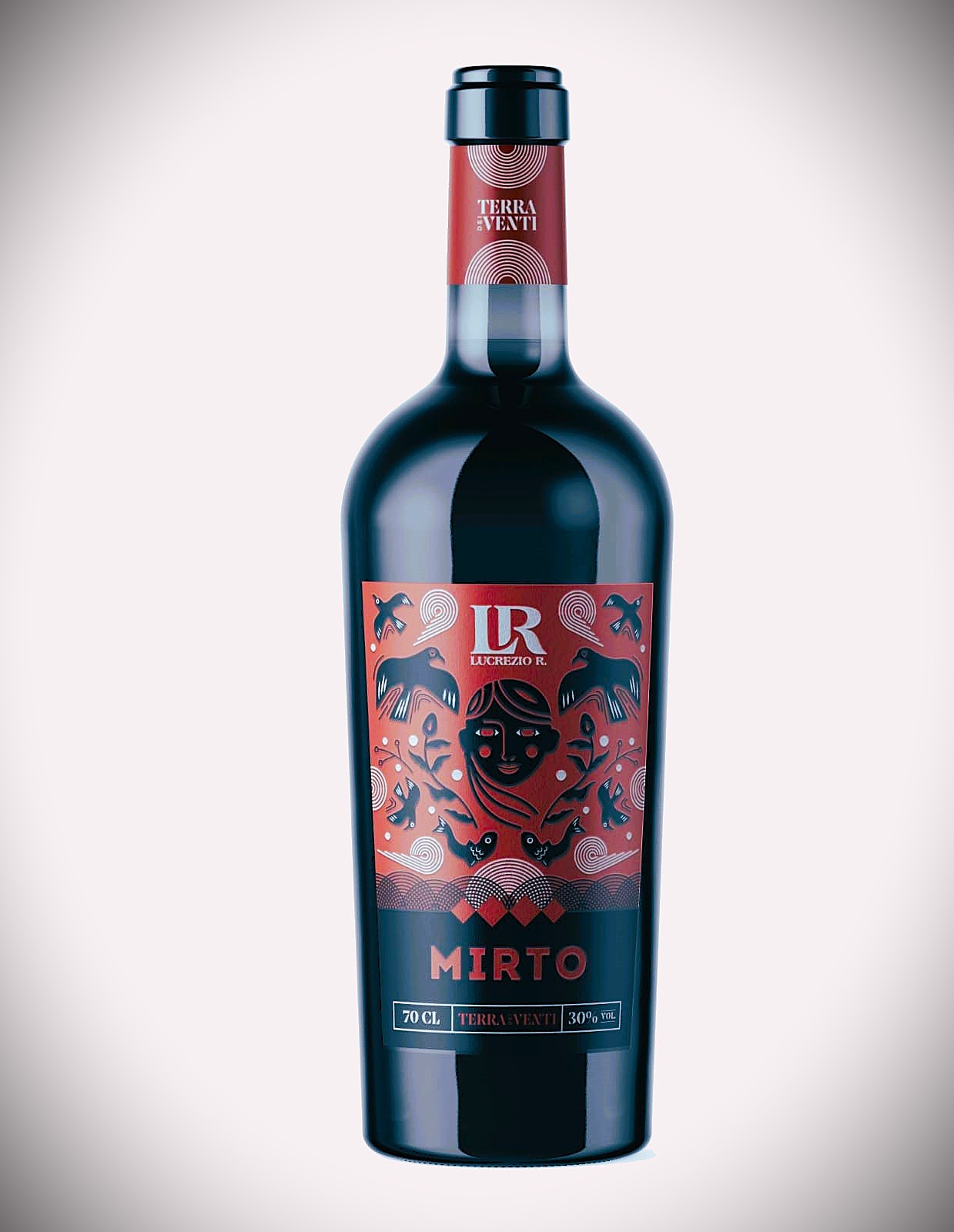 “Vento di Maestrale… tinto di un color blu/viola, il principale di tutti i venti, antico maestro della naviga- zione, che spesso con forza violenta soffi da NORD – OVEST e arrivi sulle nostre coste portando pioggia e freddo e con violenza pieghi i grossi tronchi degli alberi. Ma che altrettanto spesso, con tanta maestria, soffi sulle distese di macchia mediterranea trasportando i preziosi semi e gli intensi ed inebrianti profumi di questo speciale mirto, liquore popolare, figlio di questa splendida Isola. Ed è proprio qui, in questa terra chiamata “dei venti”, che viene infuso questo straordinario MIRTO, un liquore aromatico, dal colore rosso violaceo e dal sapore pieno e fruttato, estratto dalle preziose bacche di mirto della nostra terra.”